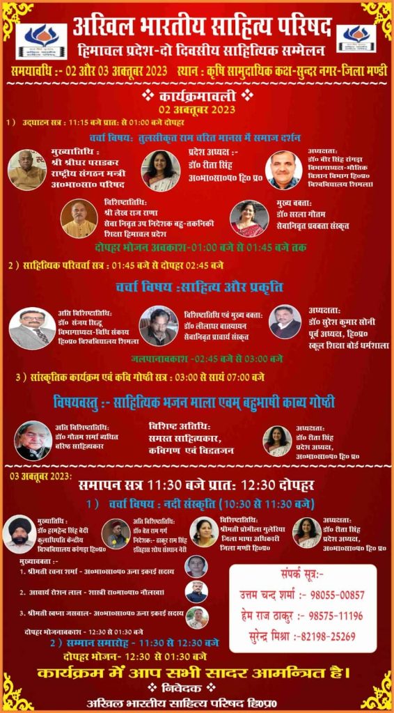 Akhil Bharatiya Sahitya Parishad-Himachal PradeshadminSeptember 26, 2023Press Release Previous Post Present on Foundation Day as a Guest Speaker for GEO Tecnosoft Next Post Kya Aap Dubai Me Apna Business Shuru Karna Chahte Hai?